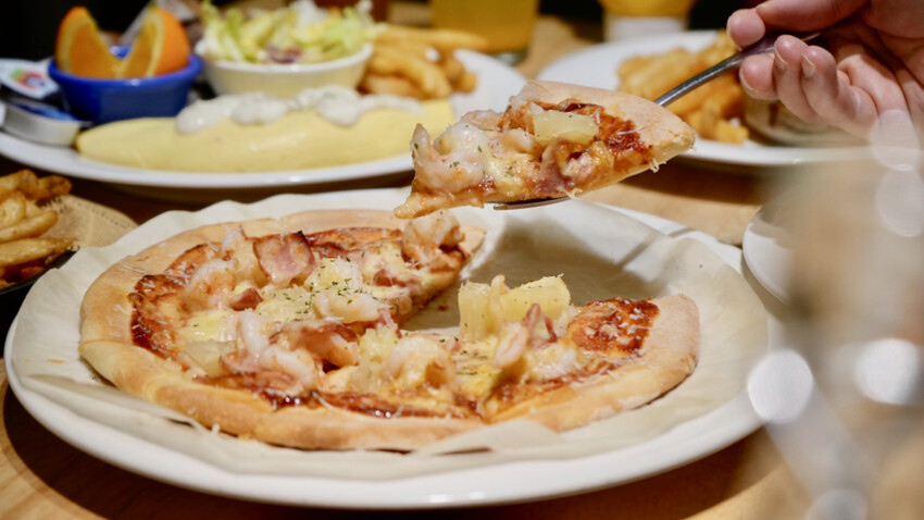 我很推「夏威夷披薩」,吃披薩這件事真的會讓人上癮,其中夏威夷口味更是我心中的首選,薄脆的餅皮搭配滿滿的蝦仁,真材實料的配料基底,帶來入口的滿足感,每一口都好過癮啊!而且他們家的披薩,冷了之後口感依然滿分喔!