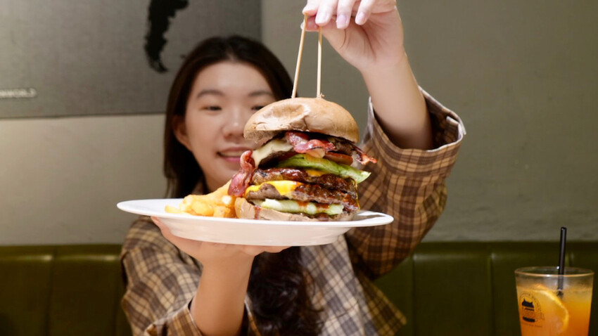 現煎的牛肉漢堡排相當厚實,入口紮實多汁、牛肉香氣十足,表面還帶點炙烤的焦香,層疊的生菜、洋蔥、番茄、酸黃瓜,還有超加分的脆培根,讓整體口感很有層次,並搭配一層一層的起司片,完美襯托牛肉漢堡排的肉香,澎湃的視覺與味覺,驚艷全場漢堡控!