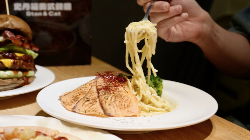 雖然史丹貓是美式餐廳,但是他們家的義大利麵也很不錯,白醬醃燻鮭魚義大利麵,濃郁的白醬裹滿麵條,調味很好吃不會很膩口,是大人小孩都會喜歡的味道。