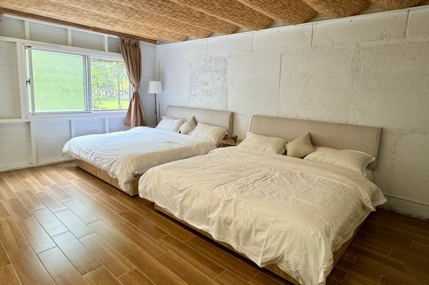 ▼【不遠露營度假山莊】的茅草屋房間可入住兩人~四人,空間寬敞住起來很有舒適感。