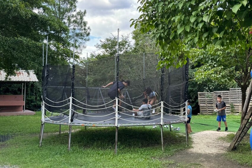 ▼【不遠露營度假山莊】設有小朋友最愛的遊樂設施,溜滑梯、單槓、盪鞦韆和跳跳床,夏天時還有消暑的游泳池滑水道,超級豐富且齊全~