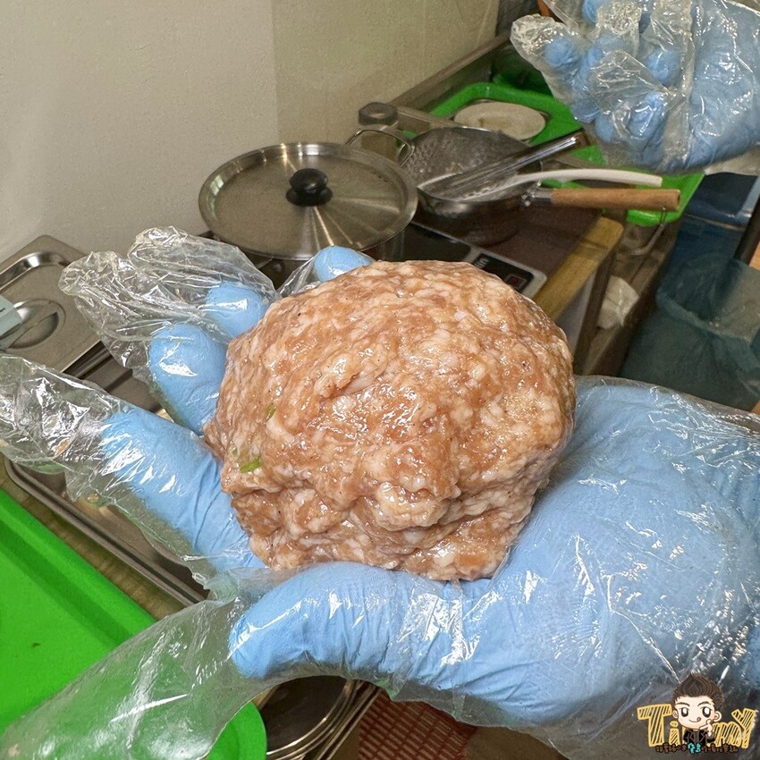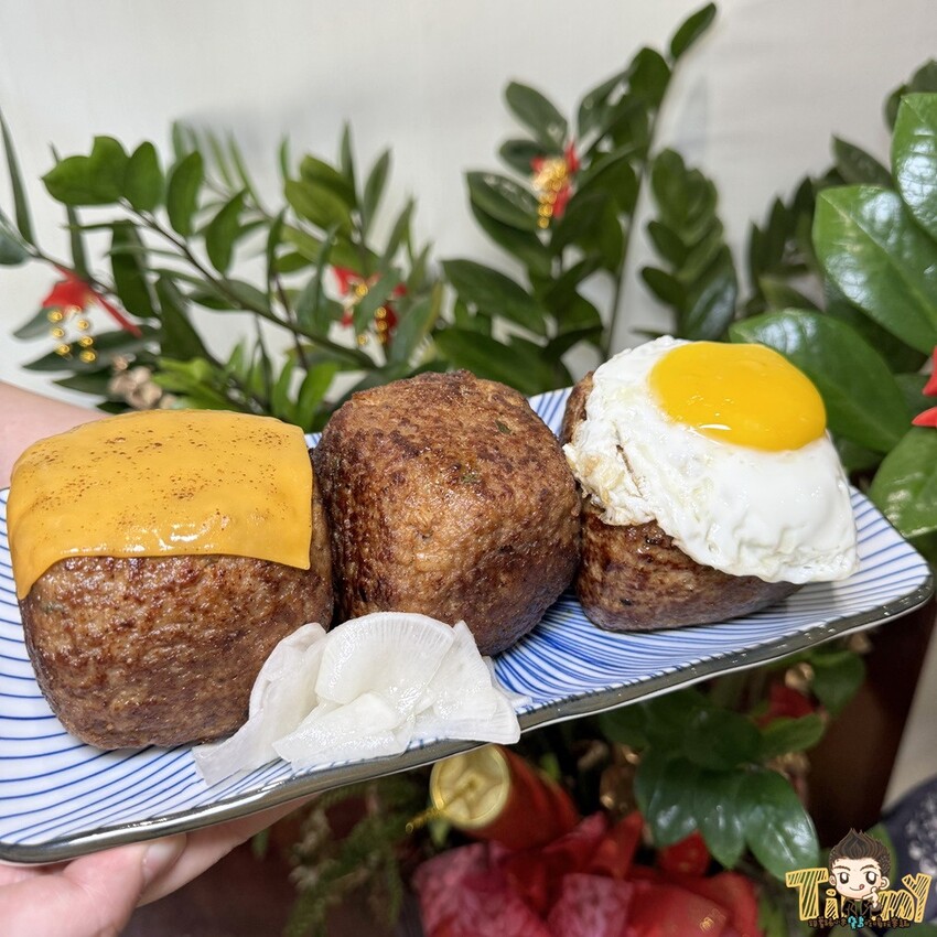 這原來是大陸東北的街頭小吃”肉包飯”,以獨門醃製的豬肉包裹糯米飯,煎至金黃焦脆,看起來就像是巨型燒肉飯糰,很適合愛吃肉肉的朋友