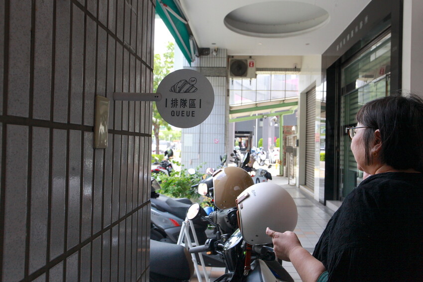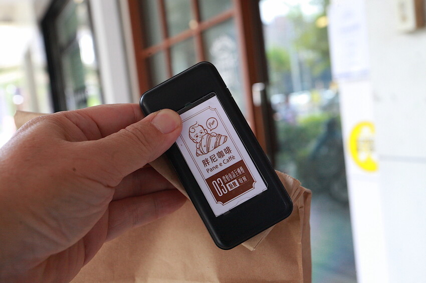 服務員會送上可頌叫號震動器給客人,等到震動器震動在進入店內挑選與結帳。
