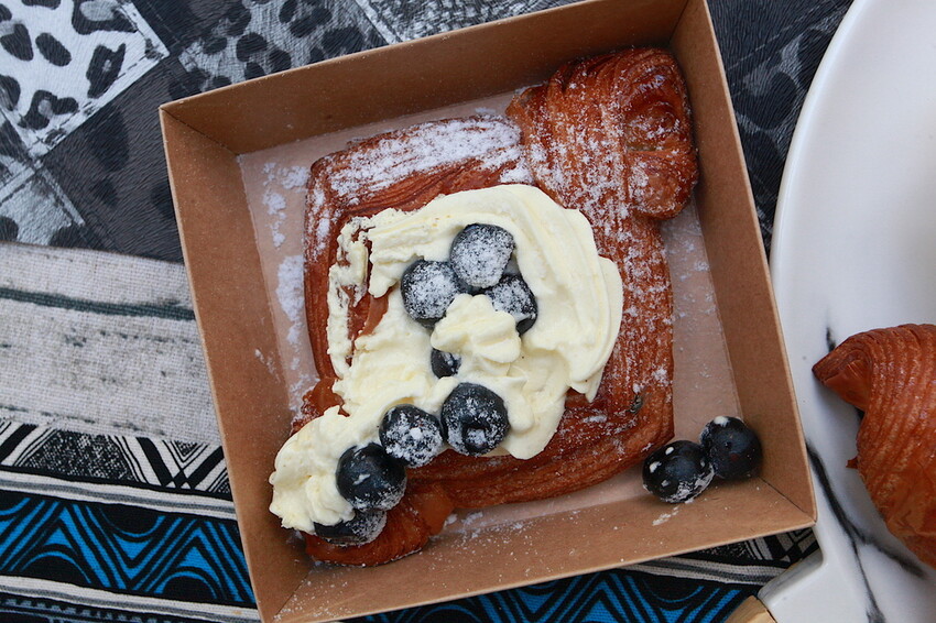 這丹麥表面卡士達醬濃郁爽口,藍莓很甜整體酥脆軟Q非常好吃
