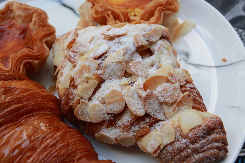 這可頌表面杏仁片烤到焦香美味,整體酥脆甜而不膩很紮實超好吃