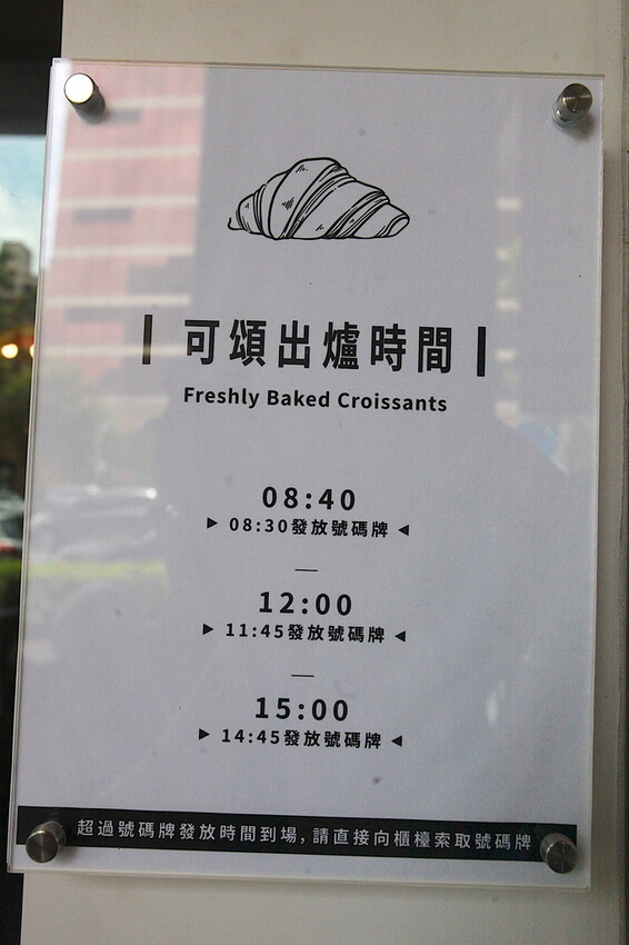 可頌大概10種每日限量提供,每天08:30/12:45/14:45等三時段來供應,