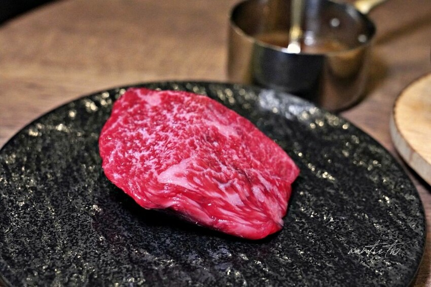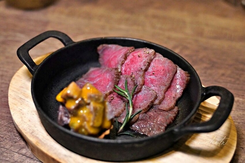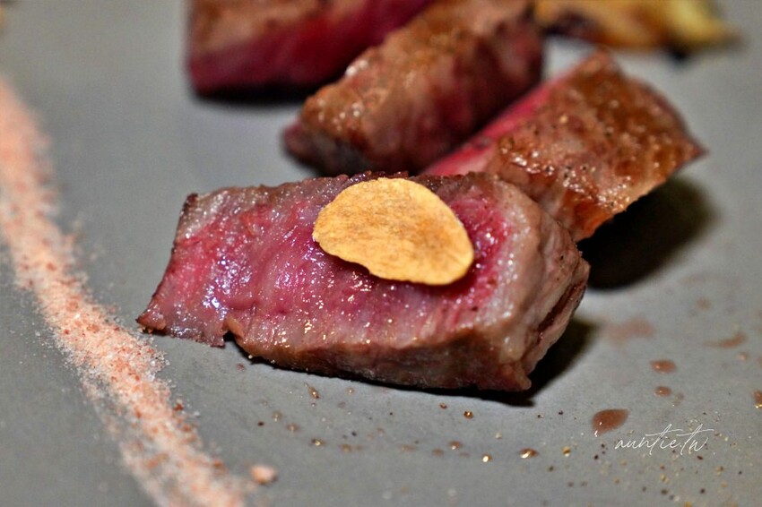 主餐A5神戶牛稀少部位牛排以兩種方式呈現,熟成肉以及柴火燒烤,這次吃到的稀少部位是臀肉的部位。