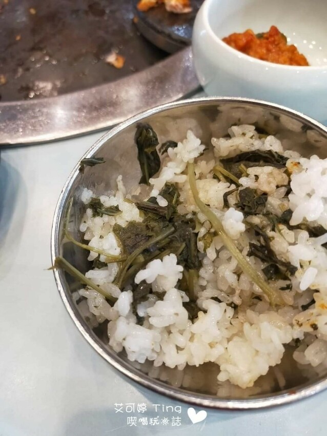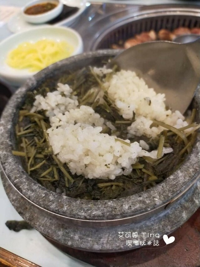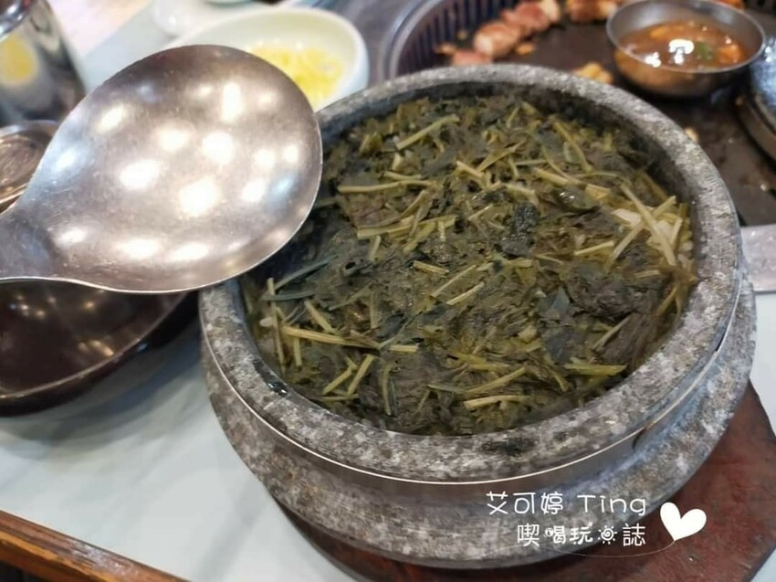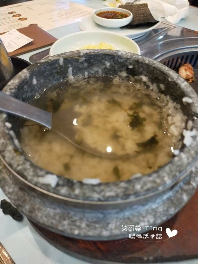吃法就是把石鍋飯的飯挖到剩一點,再把熱湯倒進去,就變成湯泡飯,不過我只吃了一些飯配烤肉,後來胃不舒服也就不敢多吃