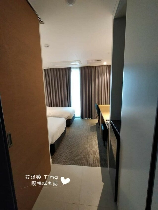 朋友剛進門看到房型,覺得房內空間跟價格比稍微偏小,不過外面有露台,就還行拉,行李箱23跟29吋的還是夠放