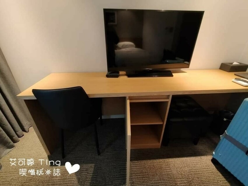 有電視、椅子,桌面也不算小,還好除了廁所的小垃圾桶,房內還有一個比較大的垃圾桶可以丟垃圾