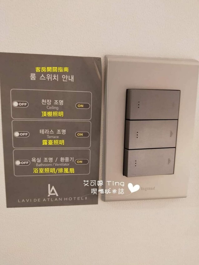 撇除廁所的插座,只有靠近床頭這有插座方便使用,沒有萬國插座或是USB插孔,所以要記得自行攜帶轉接頭,朋友就是忘了帶,第一天就在Daiso、Artbox找可以使用的