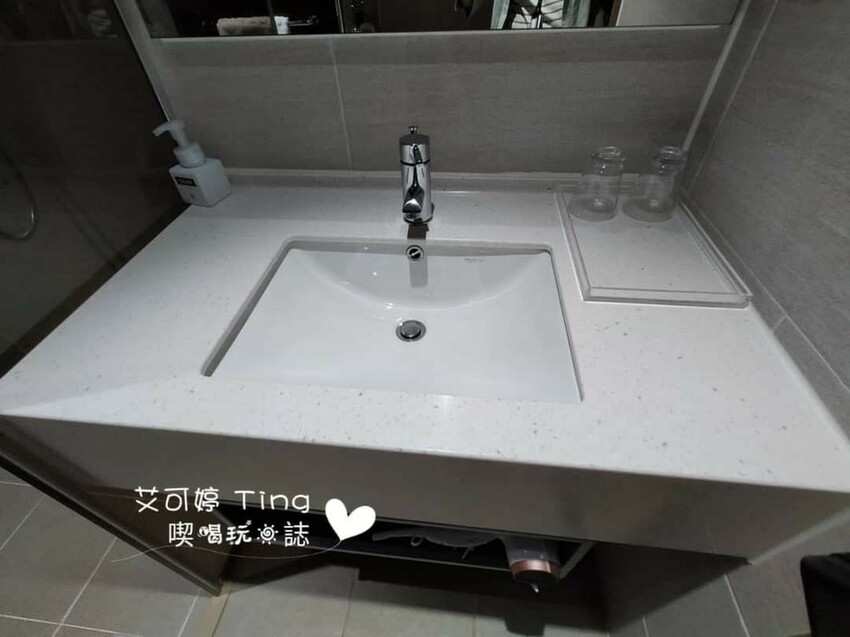 廁所洗手台桌面上只有杯子跟洗手乳,下方有提供吹風機,所以盥洗用品要自己帶,3樓櫃台旁好像也有販售套組