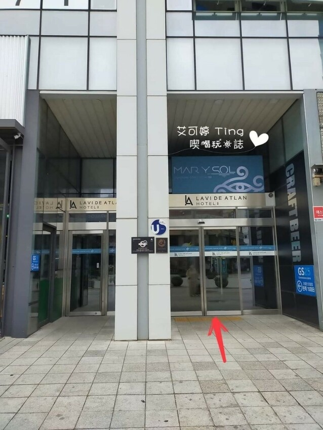 高樓建築,地理位置算是很不錯,距離地鐵海雲台站走路5分鐘就可以到,入口處不是太明顯要仔細找一下,大樓下有GS25,周邊環境吃的也很多