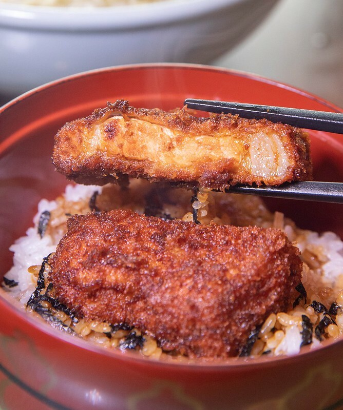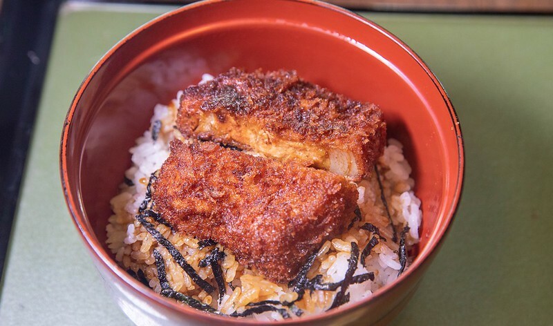 醬汁豬排同樣是福島的名物,雖然長野、岡山和日本其他地方也有類似的,但醬汁或多或少有一點不同。食堂きかく醬汁有一點鹹,但豬排炸得神酥,豬排本身瘦的地方嫩、肥的部份油甜,飯也煮得非常好吃,豬排和飯間還舖了一層海苔碎片。