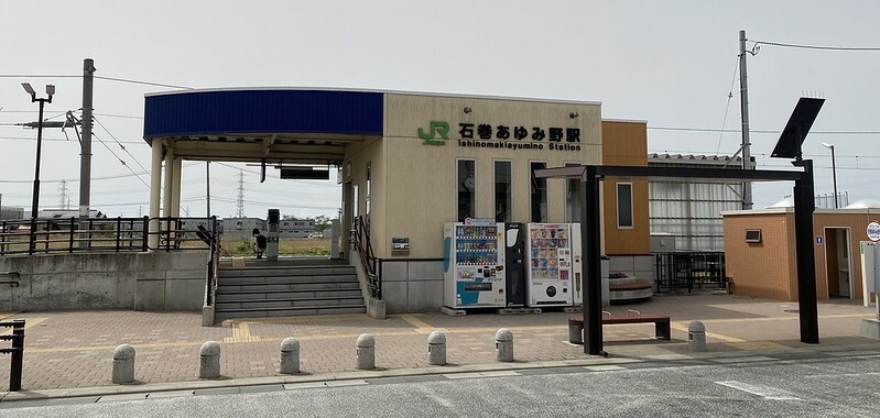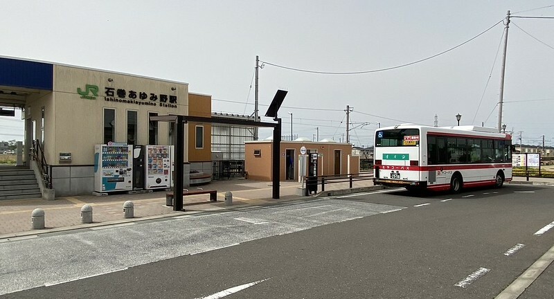 石巻あゆみ野算是一個無人車站,但月台相對來說算是蠻新的,車站外也有洗手間、自動售賣機,車站前就有接駁的公車。不過,做功課前請注意,日本鄉下的地方巴士時間表都是有分假日、平日,而且會不定時更新,最保險的是出發前在用GOOGLE MAP查一次。以這條線來說,算是班次蠻多的,我搭過一天只有一、兩班,五點後就沒有班次的巴士....。