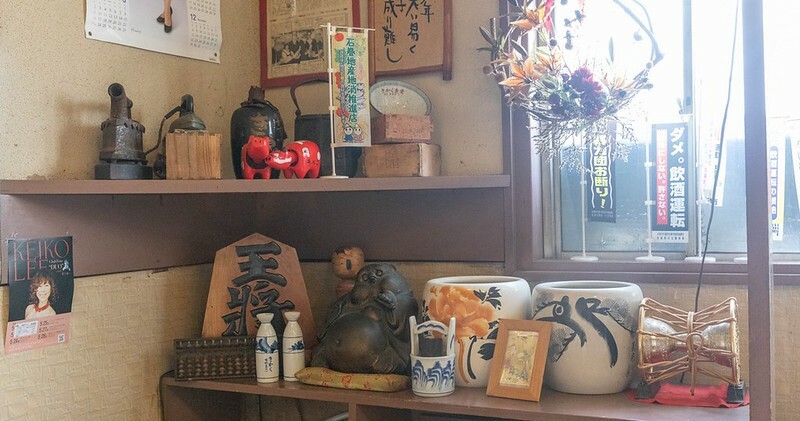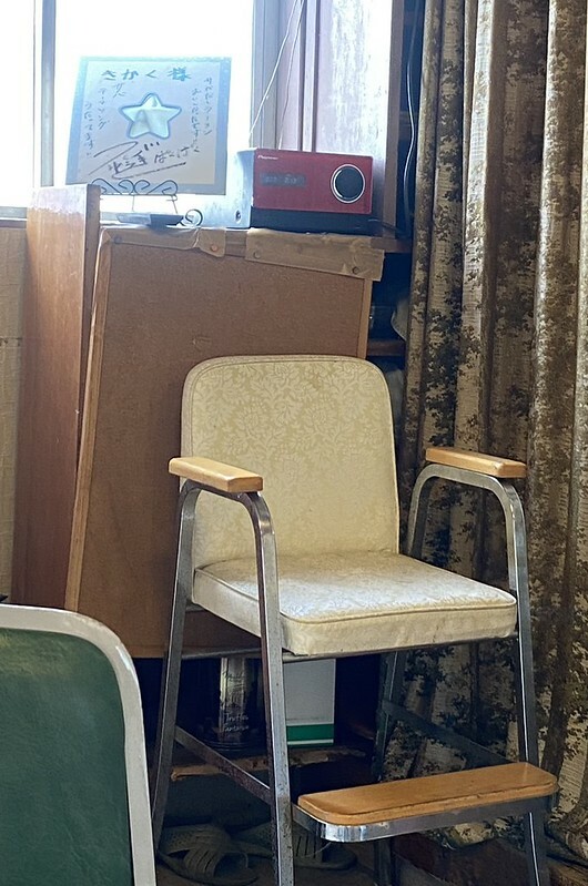 店內的陳設和一般日本老食堂並沒有多大的差別,一些像是爺爺奶奶收藏的古物、雜物、紀念品,居然有福島的紅牛,復古的兒童專用椅好可愛。