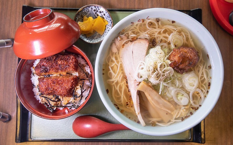 點了一碗理所當然的サバだしラーメン,然後當我看到「醬汁豬排丼」的dm時又順「口」點了一碗,奶奶怕我吃不完,建議我選迷你醬汁豬排丼,後來看了一下,這樣的組合是一個set1300日幣。
