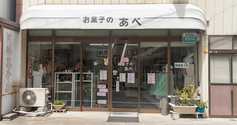 因為離巴士來還有一點時間,我更在街上晃了一下,發現這家「阿部菓子舖」查了一下也是一間50多年的老店。店裡的品項蠻多的,請老闆幫我推薦了兩款。