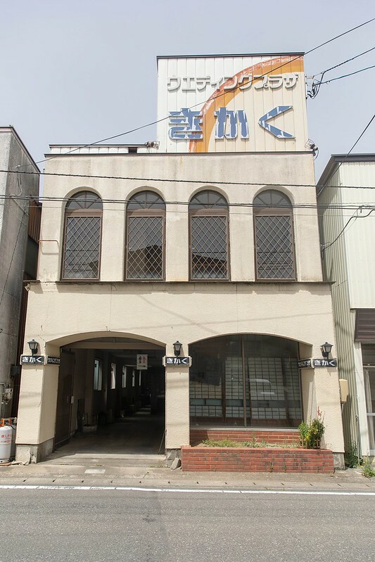 在貫穿飯野川町的主幹道上,還是可以發現一些很有味道的老店,雖然感覺繁華落盡,卻依舊靜靜駐立著,比方說這家分不清到底還有沒有在營業的「割烹料理」。