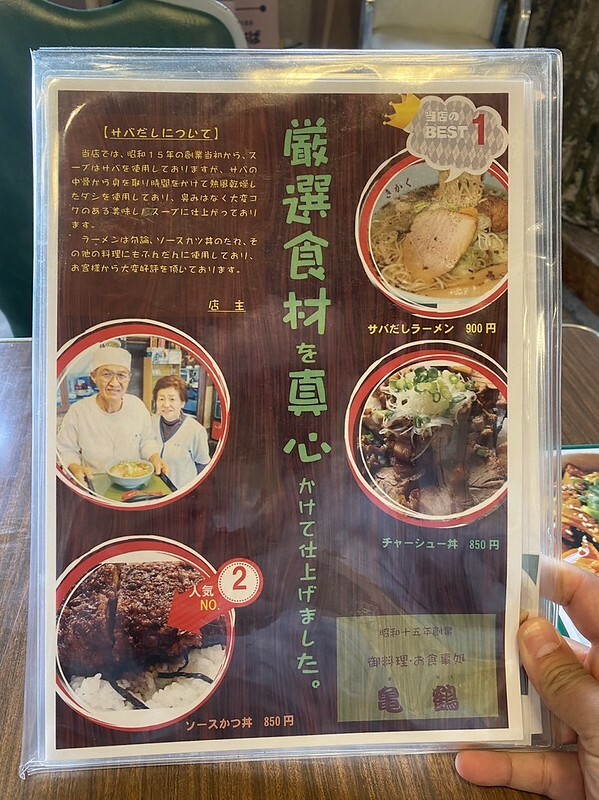 後來吃完和老爺爺、奶奶聊了一小下,問他這店開了多久,爺爺從收銀機下翻了許久才找到這張名片,上面寫著昭和十五(1940)年創業,算吧算吧有八十年的歷史,爺爺比了3,意思他是第三代,奶奶在旁邊一個勁的微笑,滿臉的皺紋卻滿是溫度,融化了無數旅客的心。
