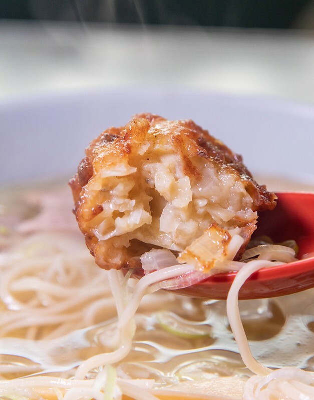 最大的特色有一塊炸物,油香脆糯非常好吃,後來爺爺說裡面有魚漿、洋蔥。吃起來有一點像基隆的龍鳳腿。
