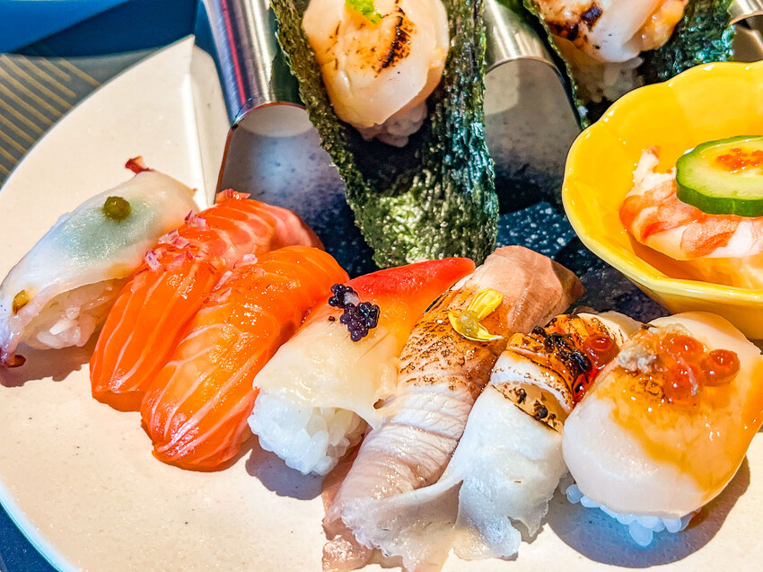 旭集和食集錦吃到飽的握壽司區,算是招牌強項!生魚片還放在木製冷藏櫃裡,看起來很有質感,握壽司老實說我覺得大概跟NAGOMI有的拼,炙燒生食級干貝握壽超級熱門,我覺得握壽司旭集和食集錦桃園中茂店應該是各店之最!