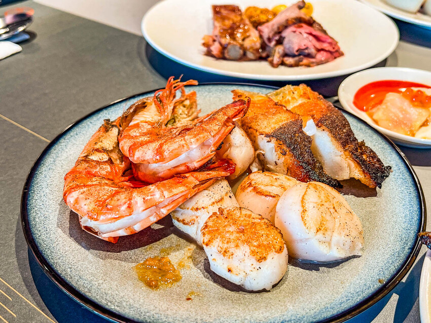 毫無懸念一定是生食級干貝拿好拿滿,還有鱈魚也是必拿,蝦子我是直接放生,去拿炸蝦比較好吃