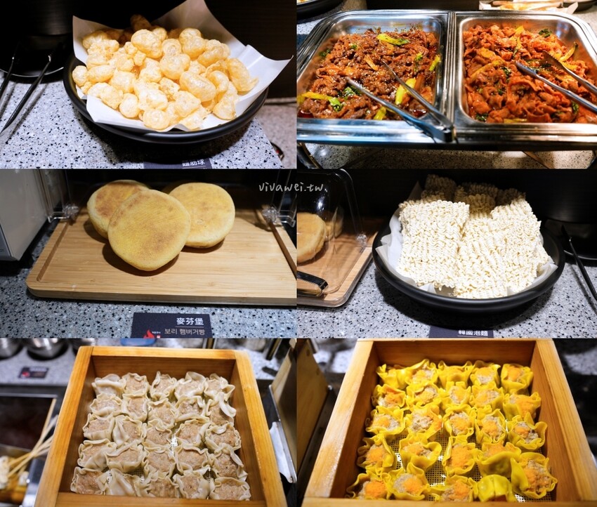 ▲這裡則是麵筋球、韓式炒肉、麥芬堡、韓國泡麵、現蒸燒賣!