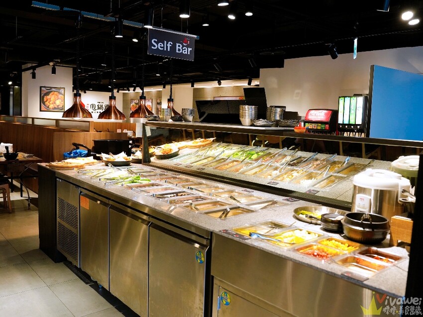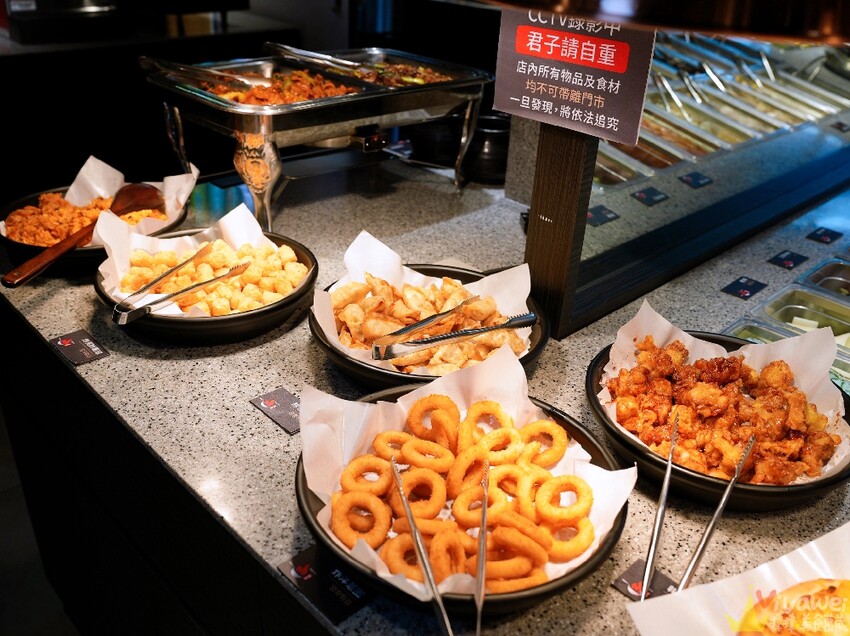 ▲店家的自助吧提供蔬菜鍋料區、各式麵類、披薩、炸雞、各式炸物、DIY炸雞奶油飯、韓國魚板湯、沙拉及麵包、飲料及冰品等(實際食材以門市當日供應為準)!