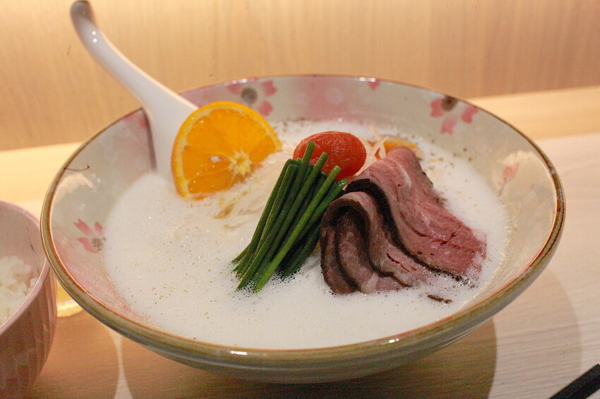 這是泡沫牛骨白湯拉麵270元。