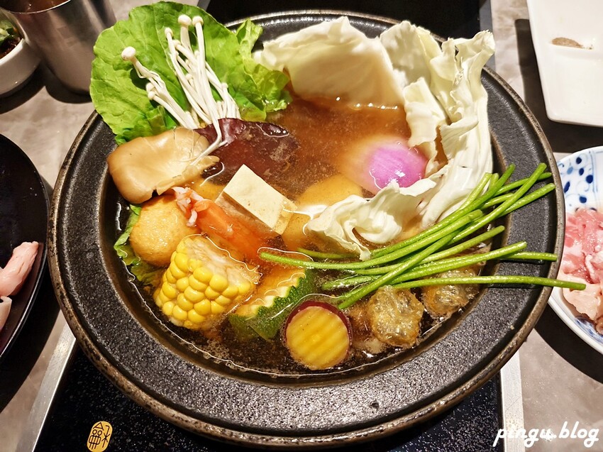 菜盤蠻豐盛的,有高麗菜、水蓮、秀珍菇、金針菇、木耳、杏鮑菇、玉米、櫛瓜、洋蔥、蘿蔔、貢丸、玉米筍、龍蝦沙拉等,五色蔬果都有了,營養滿分!!