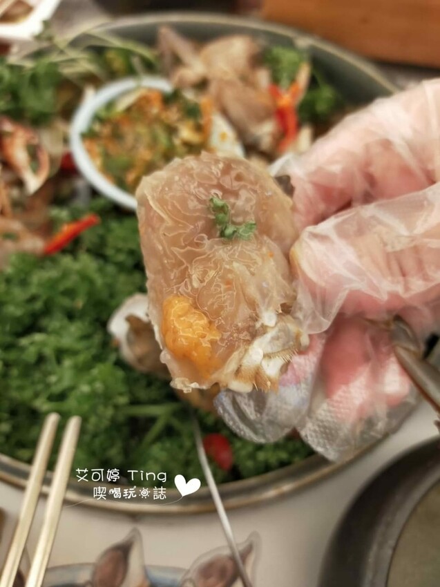 基本上海鮮吃起來都蠻新鮮沒有什麼腥味,醬蟹可以用海苔包醬蟹、小菜一起吃