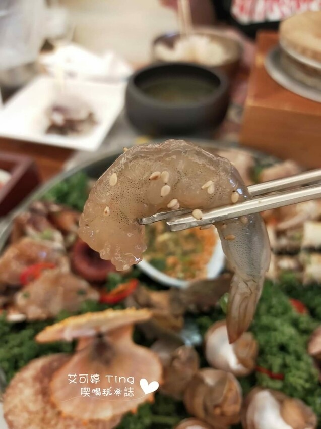我們點「美女生醃醬海鮮套餐」,一份是38000韓元,兩個人吃就是要各點一份,送來的餐點就會是我們吃的那樣