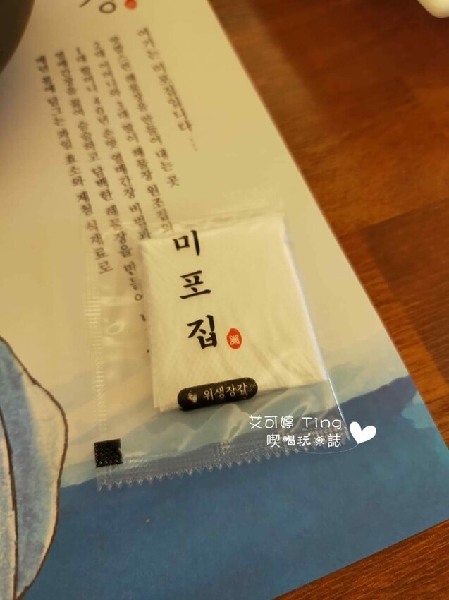 等了一陣子終於到我們入座,餐紙上面就是很夯的美女生醃醬海鮮套餐