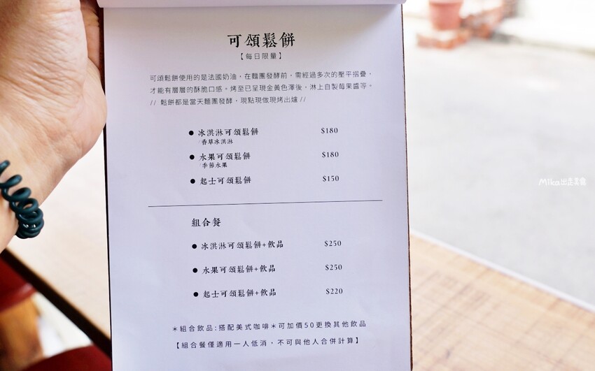 除了冰品外,也有販售咖啡、飲品、鬆餅等,價位落在$120~$250之間,每人低消一杯飲料或一份冰品或一份組合餐。