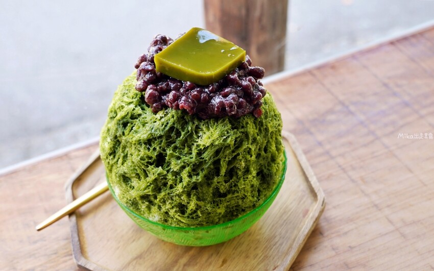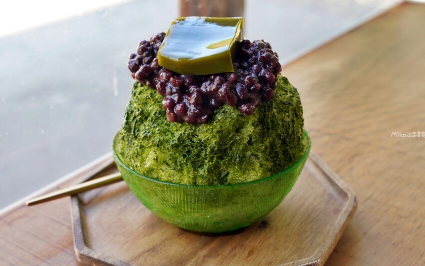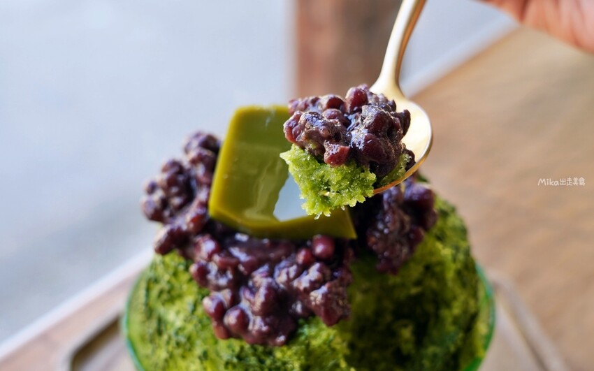 上面搭配上蜜紅豆與抹茶凍搭配而成,堆成一座小綠山丘,可愛極了!