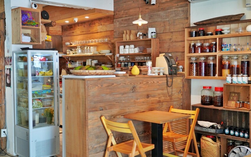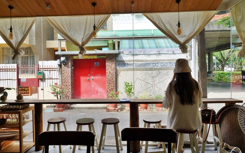 大片落地窗可以欣賞眷村特色,還有路人走秀。