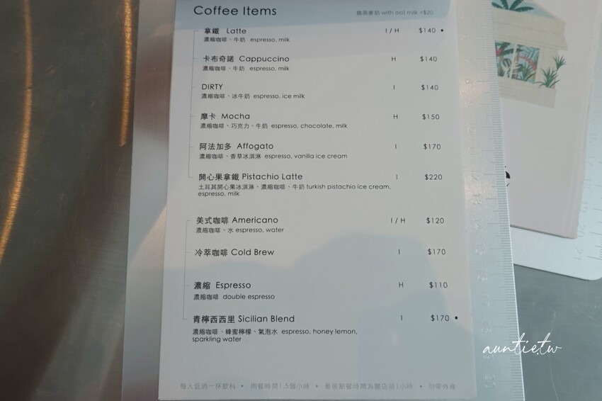 飲料種類很多,還有早午餐麵包盤以及常溫點心等,整體價格偏高,還有提供雙人下午茶套餐搭配,價格跟五星級飯店有得比。