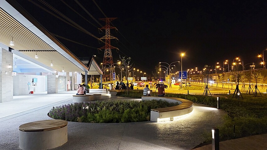 夜晚的東草屯休息站,少了商場,就只有小歇吹涼風,上個廁所再出發~~~
