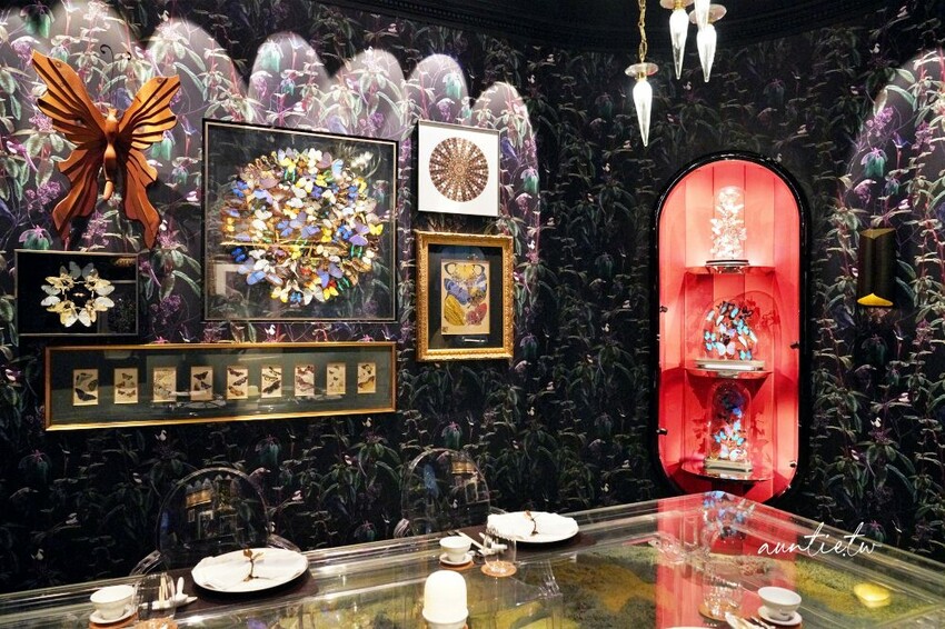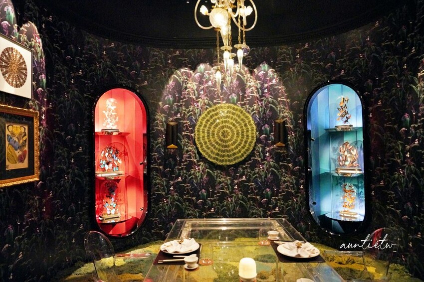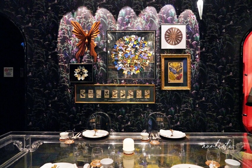 左右延伸總共五個包廂,每個主題不盡相同,庭園花鳥,還有以蝴蝶為主題的包廂,繽紛迷幻。