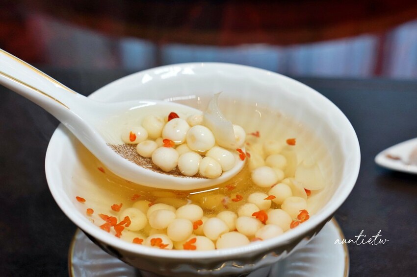 雞頭米其實就是芡實,搭配桂花煮成甜湯,甜度不會太高,味道高雅清新。