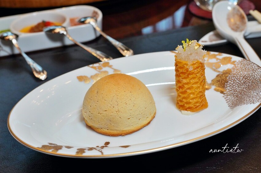 做成像是小蛋捲般的燕液脆網澳帶卷,口感相當脆口,還加入了印尼官燕點綴;黑胡椒和牛雪山包則是使用A5等級的黑毛和牛,再加上黑胡椒醬汁,雪山包的口感外酥內軟,帶著香甜味,有種港式菠蘿包的感覺但又沒那麼油膩,非常好吃,吃過一定會回味無窮。