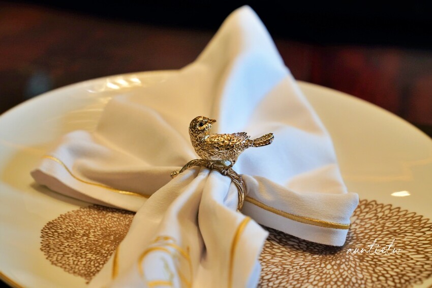 不同主題包廂內就連桌上餐巾口布的裝飾也都不一樣喔!