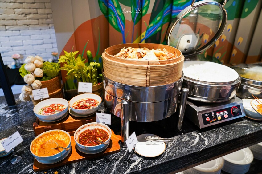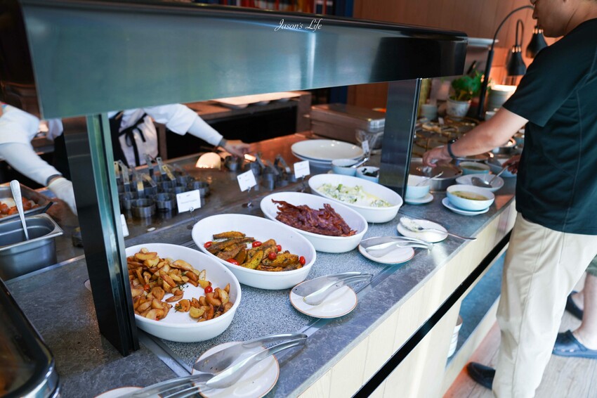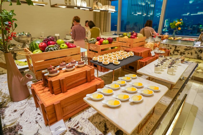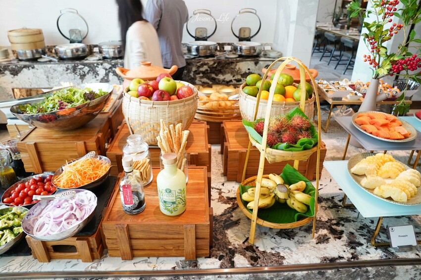 餐點有鹹食、甜點和水果且酒飲是無限暢飲的