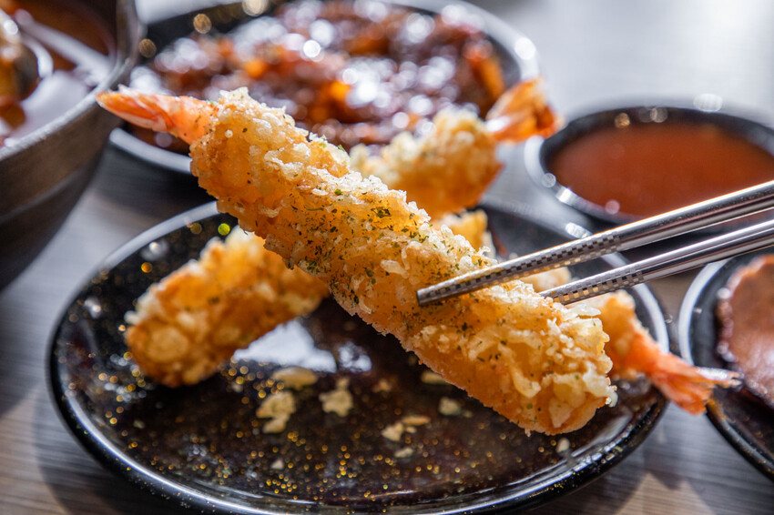 天婦羅炸蝦,天婦羅炸蝦非常夠水準!麵衣薄薄輕輕的裹著肥嫩的蝦子,入口外酥內嫩,蝦子的熟度也掌握的很棒,水份跟鮮度完全鎖在麵衣中,涮嘴好吃