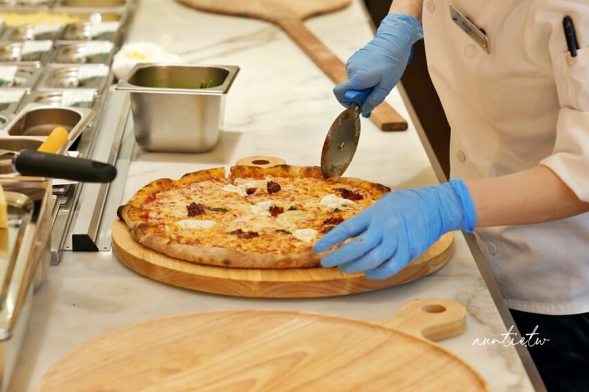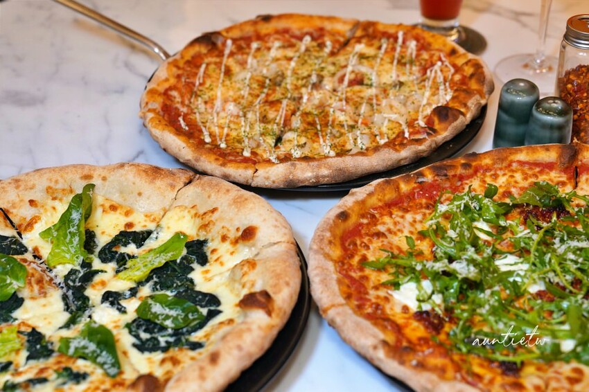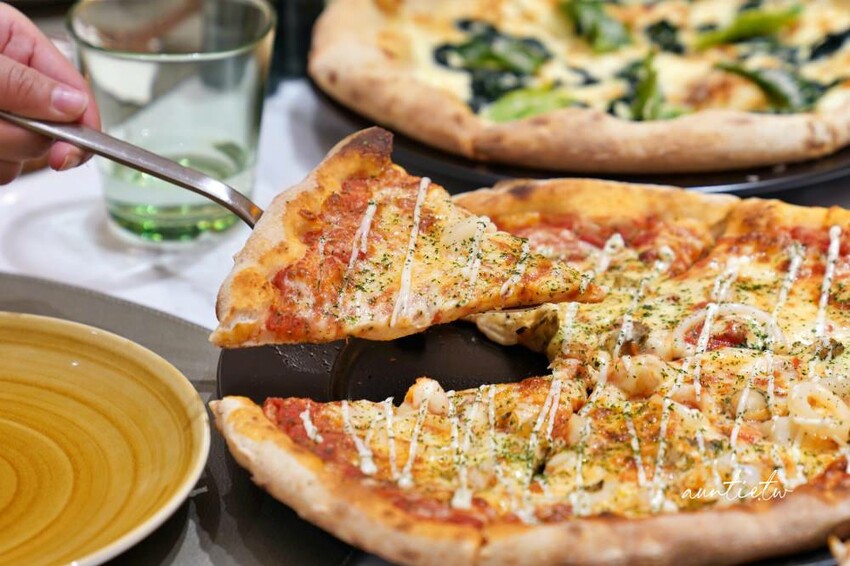 比薩的餅皮都是屬於偏薄的口感,邊邊烤的脆脆,咬起來外酥內軟,餅皮口感真的很優秀,而且比薩的配料都給的非常豐富。