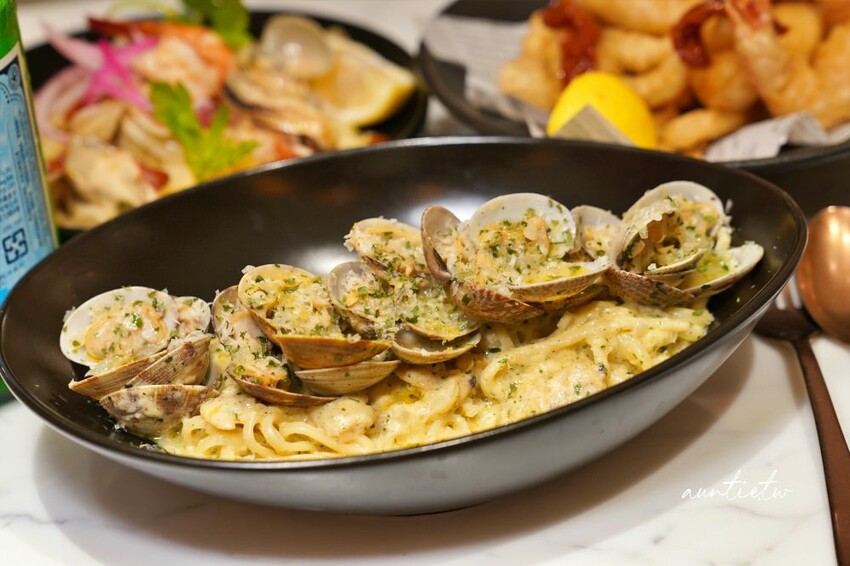 蜆肉扁意粉撒上了不少起司粉,還帶著新鮮蜆肉的海味,寬扁麵的口感很好,軟Q又帶有嚼勁。