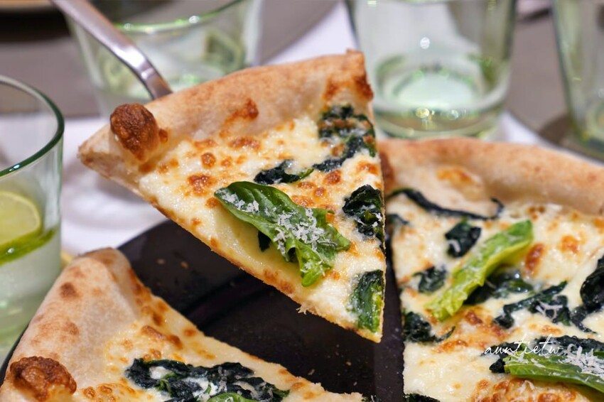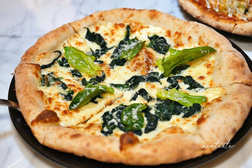 其中很喜歡芝士波菜的口味,使用莫札瑞拉起司、乳清起司、煙燻斯卡莫札起司,三種起司混合,搭配餅皮吃起來越嚼越香,口味比較單純,但就是很好吃!