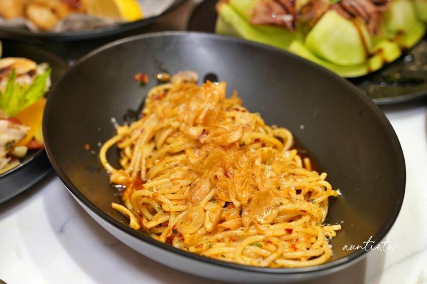 香蒜橄欖油意大利粉則是帶著微微辣度,大蒜的香氣逼人,會讓人忍不住一口接一口的吃。