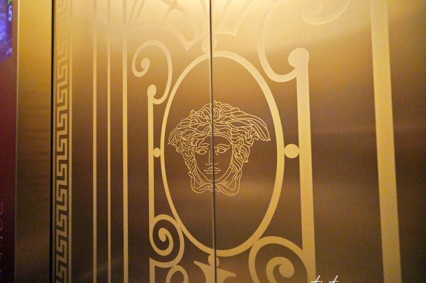 凡賽斯酒店的接待大廳走的是優雅的歐洲風格,總共有271間客房與套房,都是經由Versace 品牌設計,所以處處可以看到Versace的經典元素。櫃檯後方的馬賽克磁磚拼成的庭園中庭,看起來就像是從大廳裡延伸出去一樣,非常有立體感,大廳地面以及玻璃門上都有凡賽斯經典的Logo梅杜莎的圖案。入住時間下午三點,辦理完入住手續後可以直接進房間,飯店人員會將行李送到房內唷!